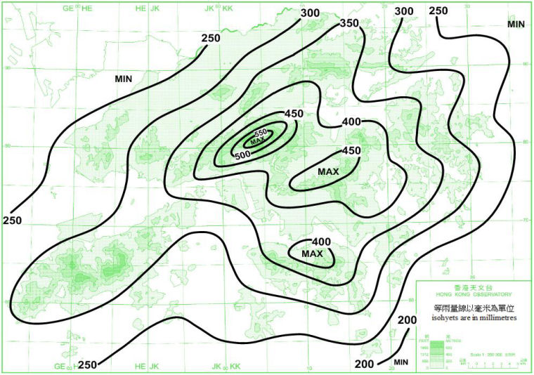 Distribution Map of Mean July Rainfall in Hong Kong (1981-2010)
