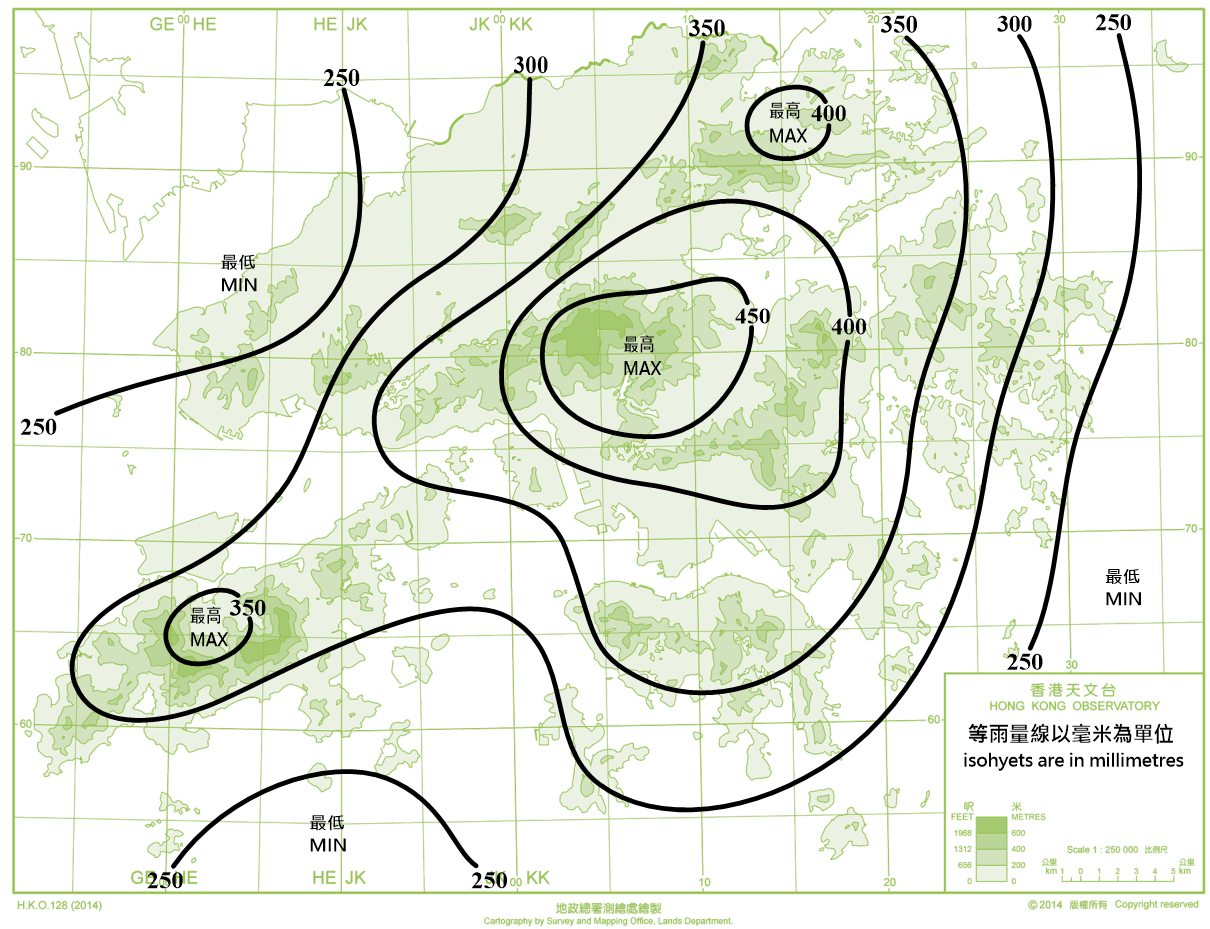 Distribution Map of Mean July Rainfall in Hong Kong (1991-2020)