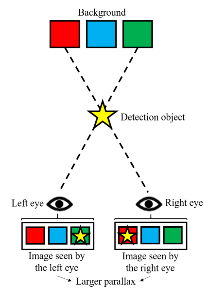 Figure 2 The closer the detection object is, the larger the parallax is. The human brain then judges the object’s distance based on the extent of parallax.
