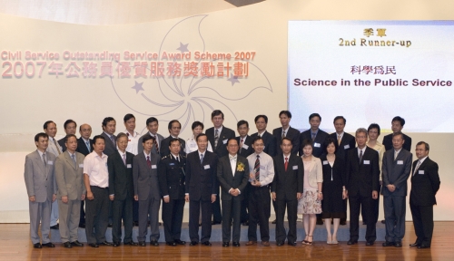 The "Science in the Public Service" campaign won the second-runner up in the "Partnership Award" in the Civil Service Outstanding Service Award Scheme 2007. The award was voted by LegCo and District Council members and was presented by the Chief Executive, Mr Donald Tsang on 13 September at the Hong Kong Convention and Exhibition Centre.