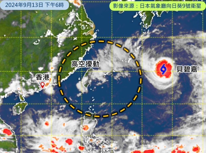 今日下午的卫星图像(图一)显示高空扰动在广东东部沿岸触发对流活动,预料高空扰动会在周末期间为广东沿岸带来几阵骤雨及雷暴。而位于西北太平洋的热带气旋贝碧嘉会在周末期间横过琉球群岛一带并逐渐增强,随后靠近华东沿岸,对华南天气没有直接影响。