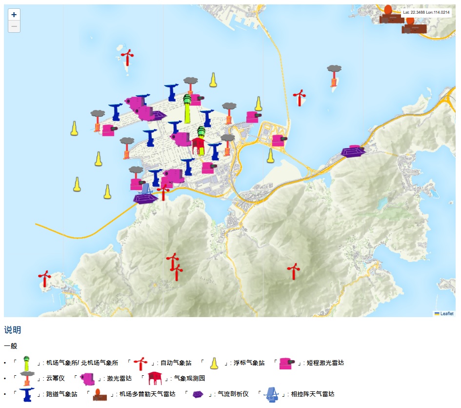![]() 用以监察风切变及湍流的气象仪器的位置示意图 按此浏览为机场而设的气象站 |