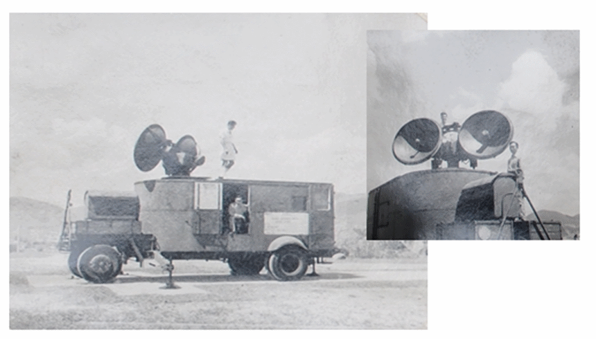 圖三 相片中的雷達能追蹤繫於高空探測氣球的雷達反射器的位置,