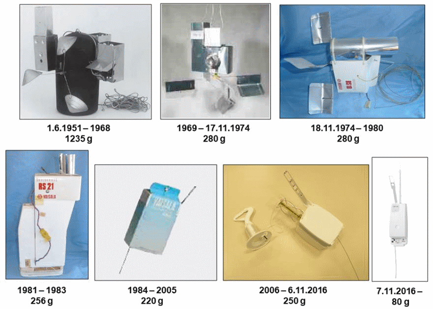 自動高空探測系統在2016年11月進行系統升級,採用了最新型的無線電探空儀,備有更精準的感應器來探測溫度和濕度,而氣壓和風則是利用GPS數據計算出來。新探空儀除了測量準確度更高外,亦十分輕巧,最新型號的重量只有80克(圖六及圖十)。