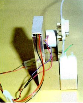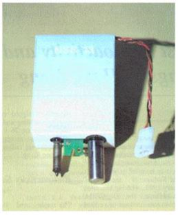 使用的探測儀,右下角是電池,電池內的電解液與空氣中的臭氧