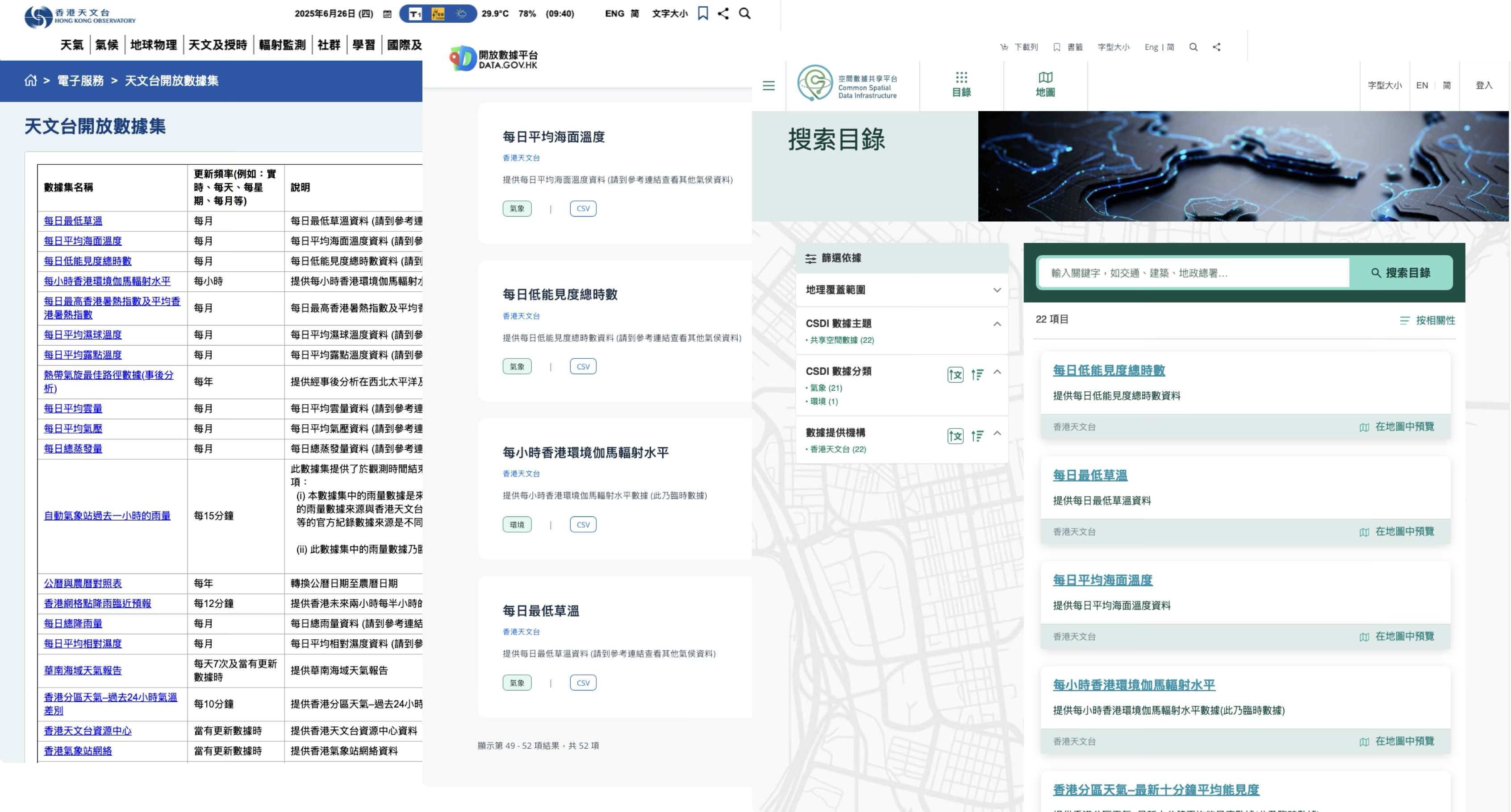 天文台在「開放數據平台」及「空間數據共享平台」上發布更多的數據集 (2025)