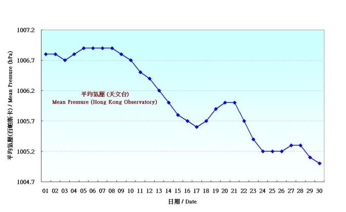 | 日 期 | 平均氣壓 (百帕斯卡) 圖示 |