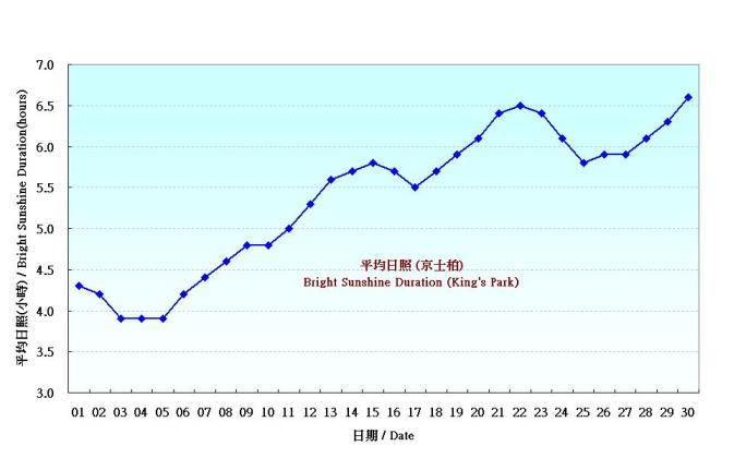圖 5. 香港六月份平均日照的日平均值(1961-1990)