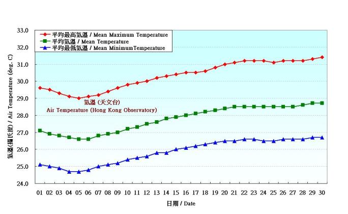 圖 2. 香港六月份氣溫的日平均值(1961-1990)