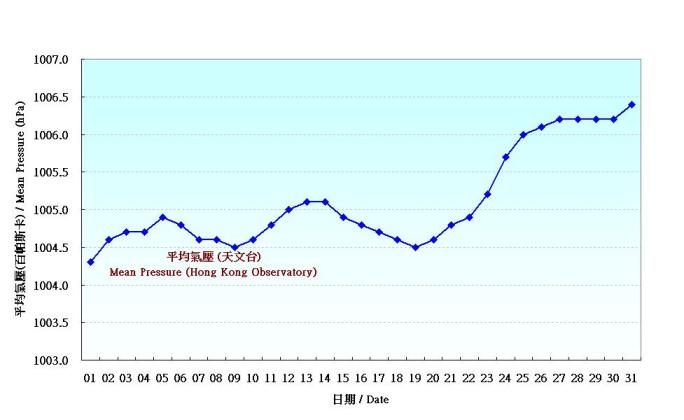 | 日 期 | 平均氣壓 (百帕斯卡) 圖示 |