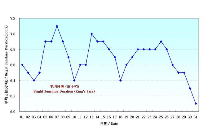 | 日 期 | 平均日照 (小時) 圖示 |