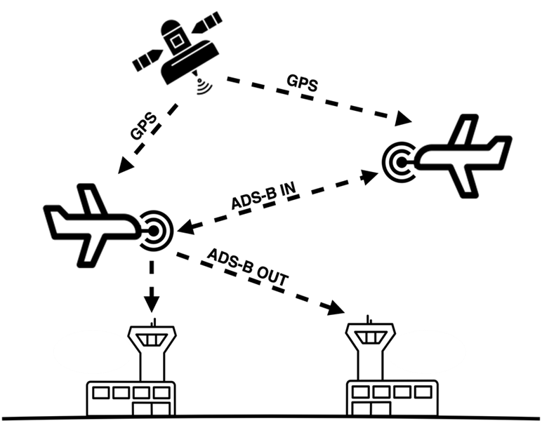 - ADS-B Out:飛機向地面站和附近的其他飛機廣播其位置、高度、速度和其他飛行數據。