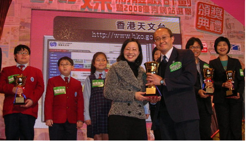 香港天文台網站獲選為2008年十大優秀網站。評選由公眾通過網上投票及一個專業委員會評審決定,準則是資訊的實用性和益智性,以及網頁編排的可用程度。天文台助理台長衛翰戈認為這次得獎是公眾對天文台工作的肯定,並承諾繼續在網站推新更多有用的資訊,以滿足公眾的需求。「2008年優秀網站選舉」由影視及娛樂事務管理處(影視處)主辦,教育局、家庭與學校合作事宜委員會、香港互聯網供應商協會和香港電台協辦。優秀網站選舉旨在鼓勵青少年多瀏覽健康網站(即不含任何不良素材的網站),以及表揚製作這類網站人士的貢獻。