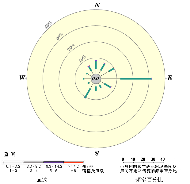 赤鱲角測風站位於赤鱲角的香港國際機場北跑道靠近中間的位置#(測風站的位置請參考以下地圖)。由於該站處於開揚及平坦的填土區,而附近亦沒有高樓大廈,因此該站的開敞程度頗為理想。該站南面為大嶼山的高山。年風玫瑰圖 顯示該站的盛行風。